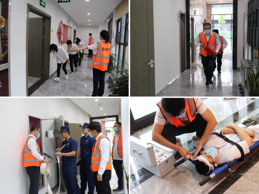 上午10点,警报响起,演练正式开始。各工作小组按照预案要求分工,各司其职,演练设置了应急联动、消防灭火、人员疏散等科目。演练过程中,全体参演人员动作规范,紧张有序地进行消防安全巡查、人员疏散引导等各项救援工作,在疏散安全员的引导下,全体人员按照安排有序疏散,严谨有序的完成规定动作和演练,迅速、紧张有序撤离至一楼大厅。